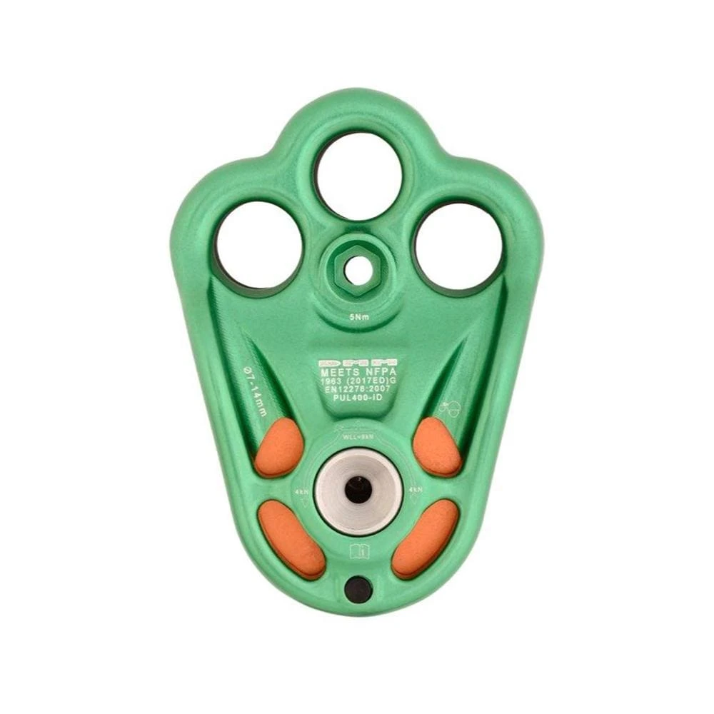 The hot forged pulley with an in-built three hole rigging plate allows creative configurations & enables direct connection to textile components to save on weight & complication